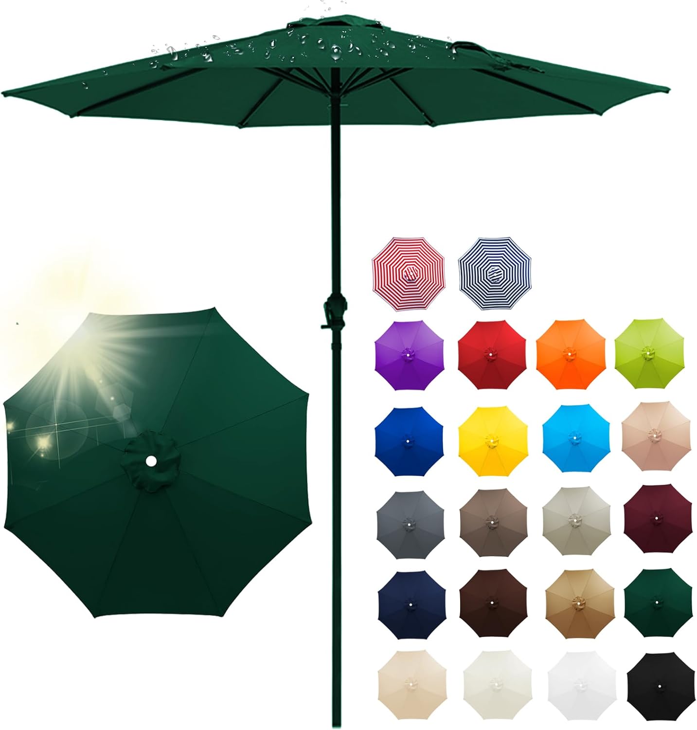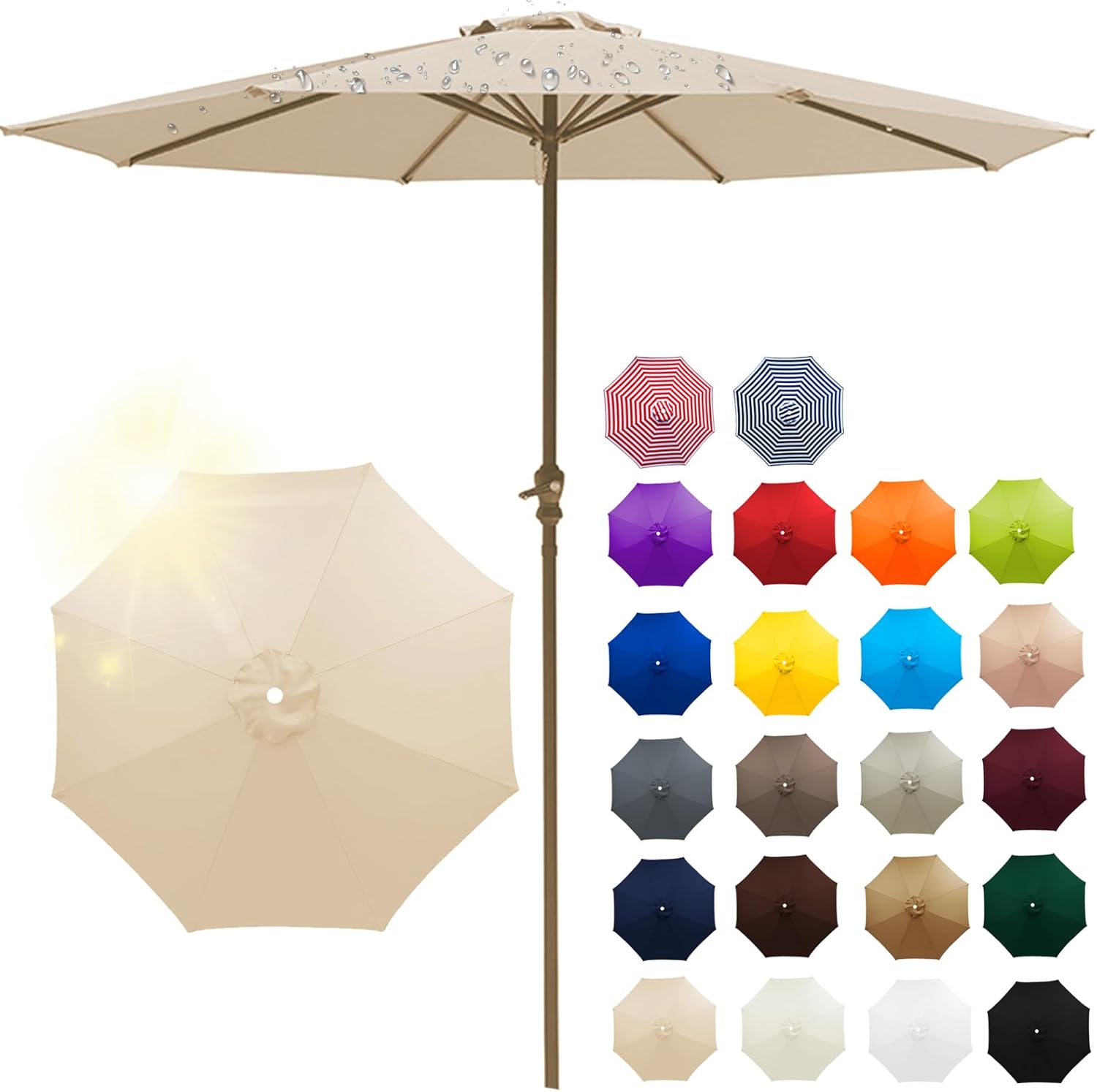 Made from high - quality polyester, this umbrella fabric resists stretch and tear, ensuring durability It provides efficient UV protection and features a breathable design for a cool feel Versatile for different settings, it creates a comfortable outdoor sunshade Product Specification Product Name: Replacement Umbrella Canopy Product Material: Polyester Fabric Product Color: Purple , Champagne , Topaz , Dark Topaz , Dark Green , Beige , Blue-White , Khaki , Burgundy , Gray , Yellow , Lake Blue , Red-White , Grass Green, Up to 20 colors Product Size: Umbrella cloth with a diameter of 2m is suitable for rib lengths of 97 ~ 99cm (38” ~ 39”) Umbrella cloth with a diameter of 2.3m is suitable for rib lengths of 113 ~ 116cm (44” ~ 45”) Umbrella cloth with a diameter of 2.5m is suitable for rib lengths of 123 ~ 126cm (48” ~ 49”) Umbrella cloth with a diameter of 2.7m is suitable for rib lengths of 132 ~ 135cm (52” ~ 53”) Umbrella cloth with a diameter of 3.0m is suitable for rib lengths of 145 ~ 148cm (57"" ~ 58"") Features: UV Protection, Waterproof, Sun Protection, Removable, Washable Package Include:1 x Umbrella Cloth Notes: Due to light and screen differences, the color may be slightly different from the picture The product size is measured manually, and there may be an error of 1-3cm, please understand Please measure the size of the awning before ordering