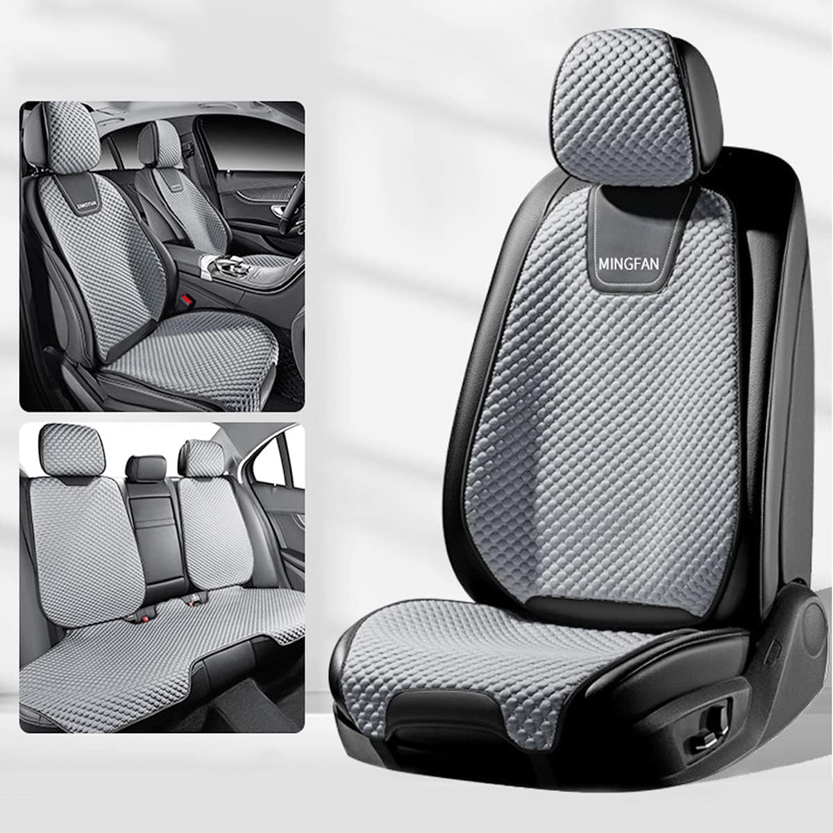 Material: honeycomb ice silk cotton, rayon, PU leather.Spring, summer, autumn and winter all seasons Through the selection of materials, processes, experiments and other product development optimization, even in the hot summer sun, the seat cushion is not easy to get hot.With balanced softness and ergonomic design, this car seat cushion is perfect for driving.Craftsmanship: delicate stitching, triangular needle hemming. Special machine sewing, even seams, firm and beautiful stitching, no warping or curling of edges.Package: Front and rear seat covers.Color: BlackQuality assurance and after-sales service:1.If you find any problems after receiving the product, you can communicate with us at any time, and we will have dedicated after-sales personnel to serve you.2.If you cannot accept our solution and need a full refund, please contact us within 7 days of receiving the item. We will provide you with a return address and issue a refund to you as soon as we receive your returned item.