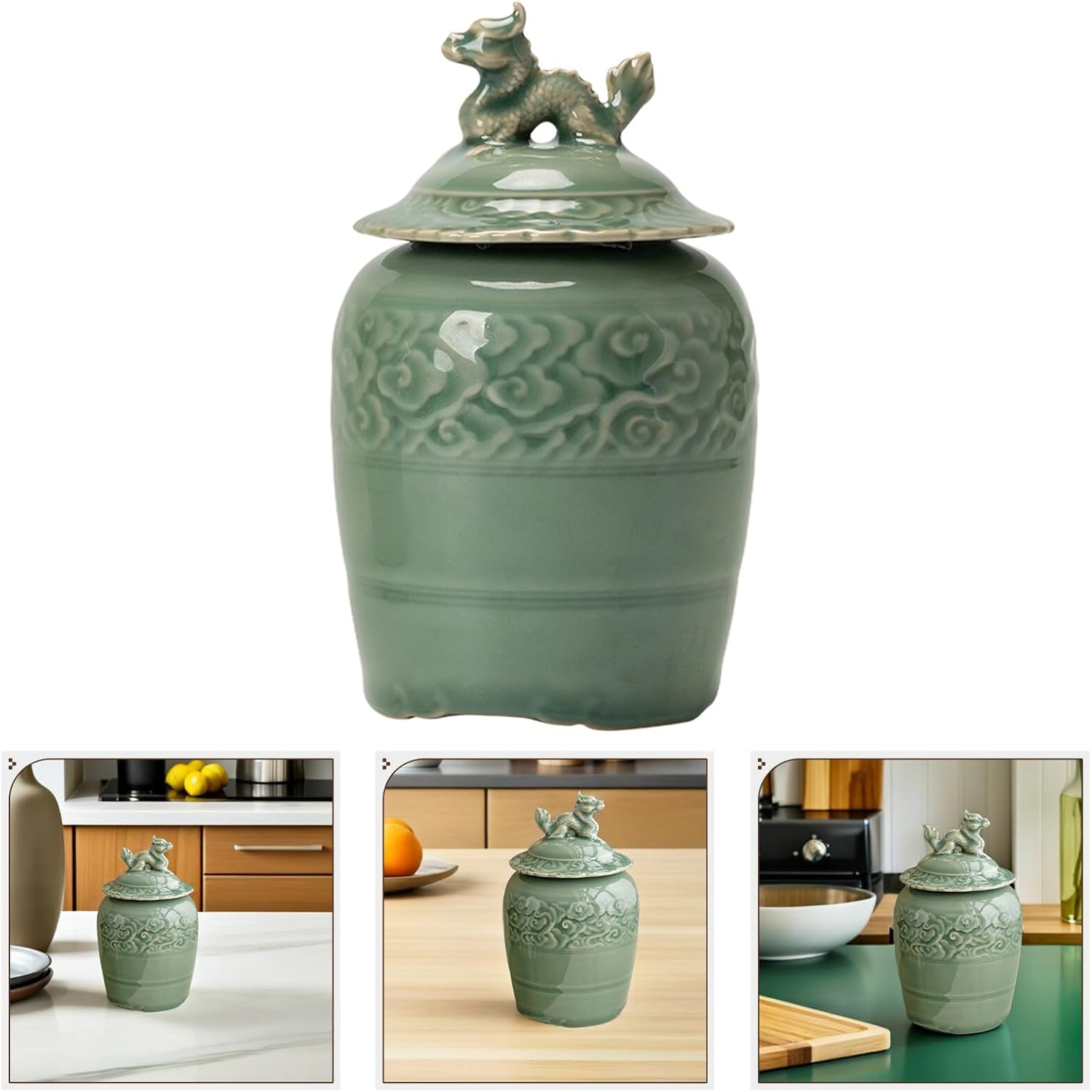 Package List 1 x storage jar Features -Product Info:Tea pot -Material:Ceramic -Size:17.00X9.80X9.80cm/6.68X3.85X3.85in - Capacity: 500ml tea canisterk -Color:Green - The lid can keep dirty things from the food inside, multipurpose and practical Ceramic Canister. - Tea Jar is perfect for storing dry food, such as hold tea, grains, dry food, cereal, rice, beans, nuts, etc ceramic storage jar. - As and convenient packaging jar with lid, it allows food to stay fresh and dry longer mini ceramic canister. - It has both portable size design and an enough capacity for small item's storage. - Adopting from ceramic material, which is lightweight, with and good workmanship.Goods Informationtea canister for tea bags Are you looking for a practical Tea Jar? Are you in search of a sturdy, trustworthy jar that can be used to store loose tea or coffee beans? , ! Our ceramic Tea Jar, made of ceramic materials, must meet your need