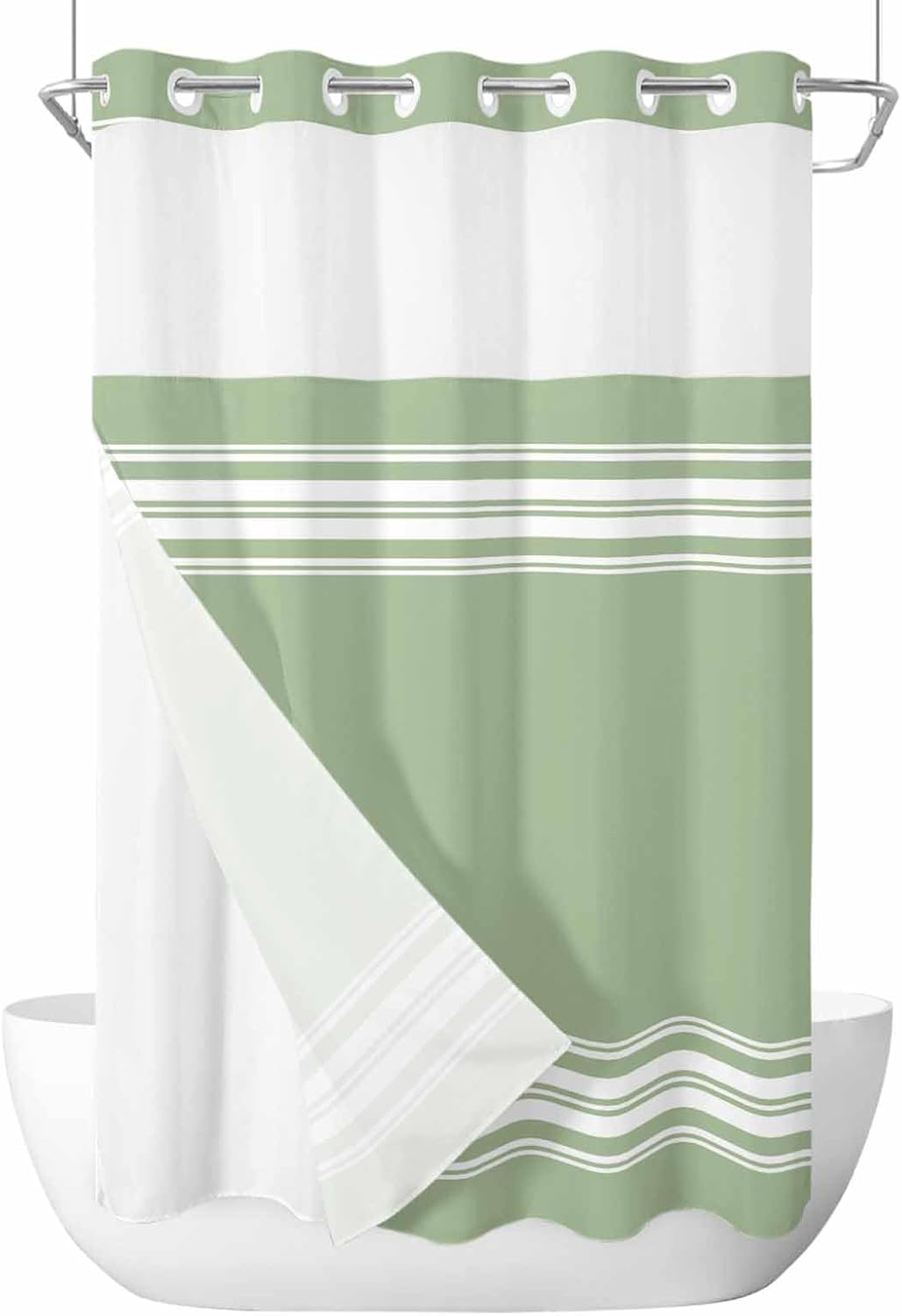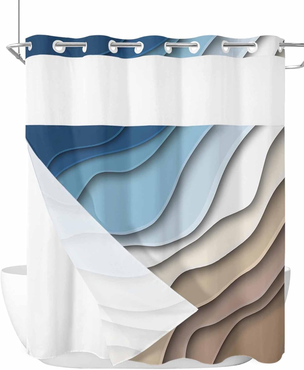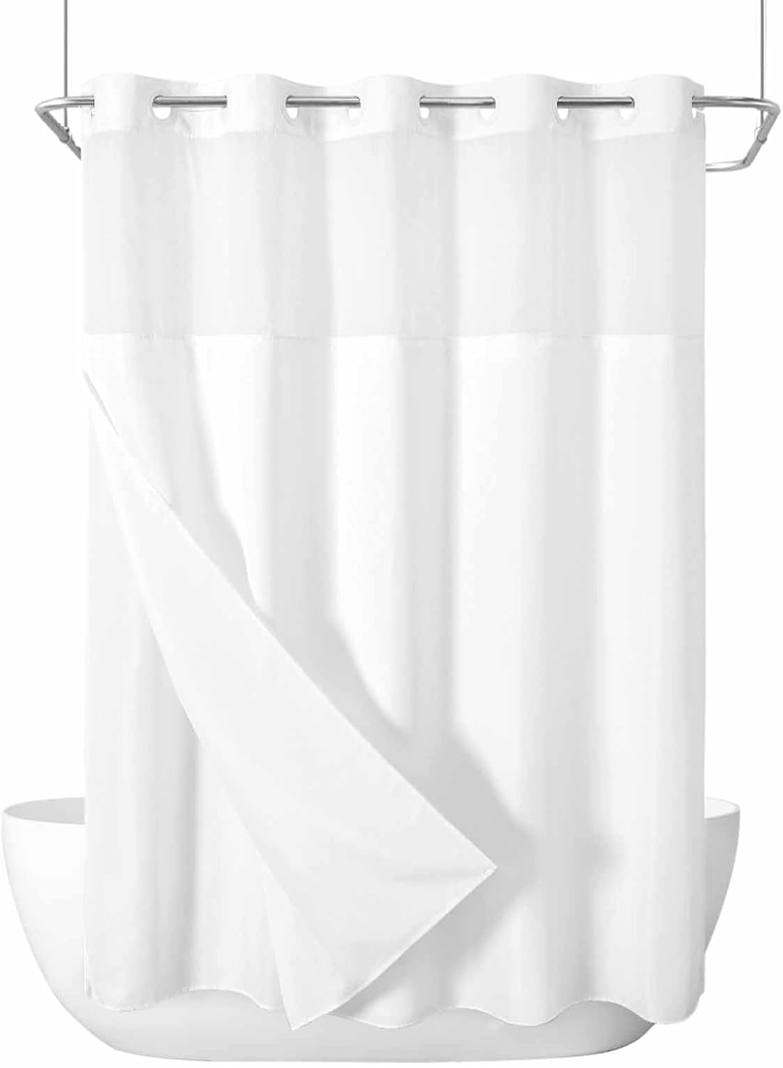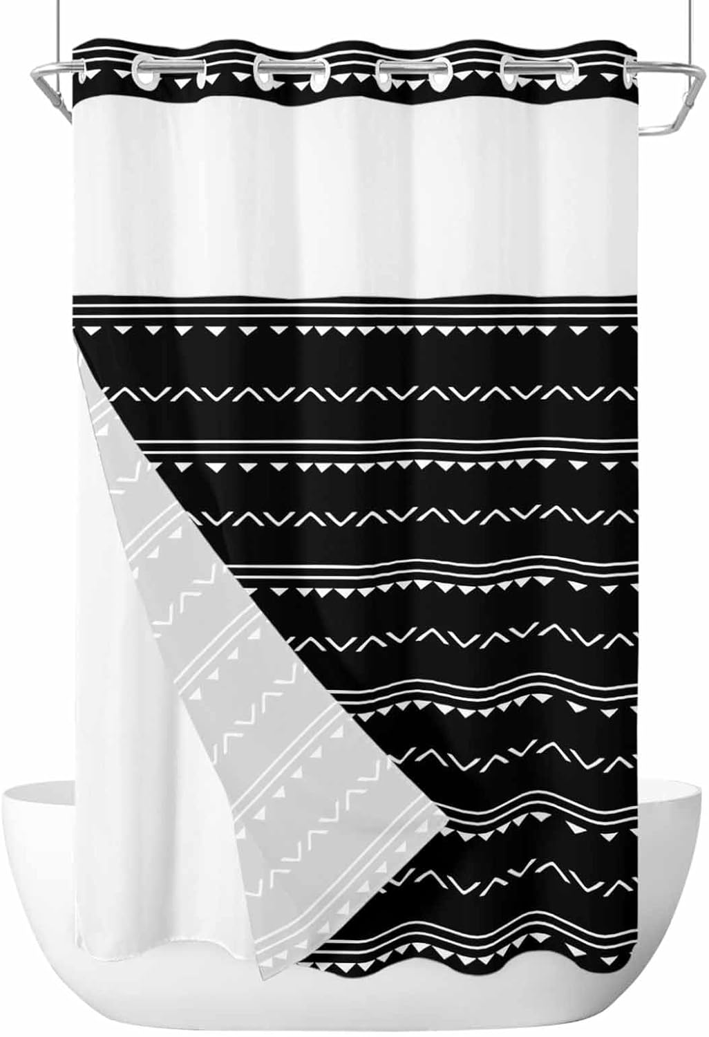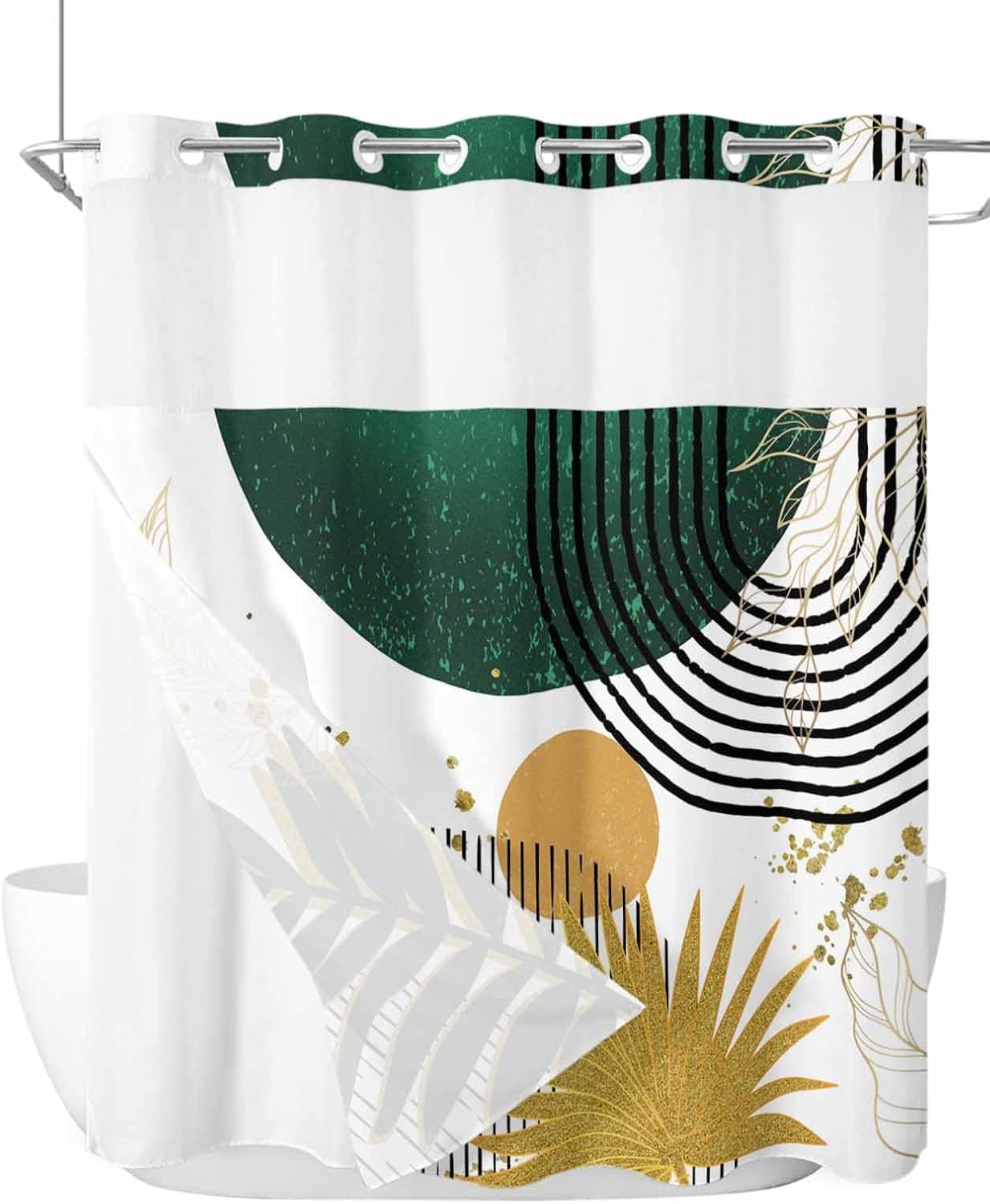 Chic D Shower Curtain is a double shower curtain with a snap design. Compatible with beauty and practicality,you will have a good mood when you take a shower! 🌟Mesh Windows The mesh section at the top provides more light into the shower area while maintaining privacy. It also promotes airflow to reduce humidity to provide a comfortable bathing environment for you. 🌟Double Layer With Snap The shower curtain with snap in liner, Double layer design made of premium 100% polyester fabric. White snap-in fabric liner is removable for cleaning without removing the entire curtain. 🌟No Hook - Easy Installation Hook Free Design and snap-in design effortlessly hook up the shower curtain on the rod within seconds. Easy to install and convenient. 🌟Waterproof Feature Made of premium polyester fabric. Waterproof, non-fading, and wrinkle-resistant. Adopt raincoat water repellent technology. Allow the water drop to fall off quickly. Keep the bathroom neat and clean. 🌟HD Printing and Vibrant Colors Shower curtain adopts HD printing technology to ensure vivid pattern and bright color, no smell, and no fading. Give visual enjoyment when you take a bathing. 🌟Easy to Wash Hand wash or machine wash with cold water, hang to dry, do not bleach.