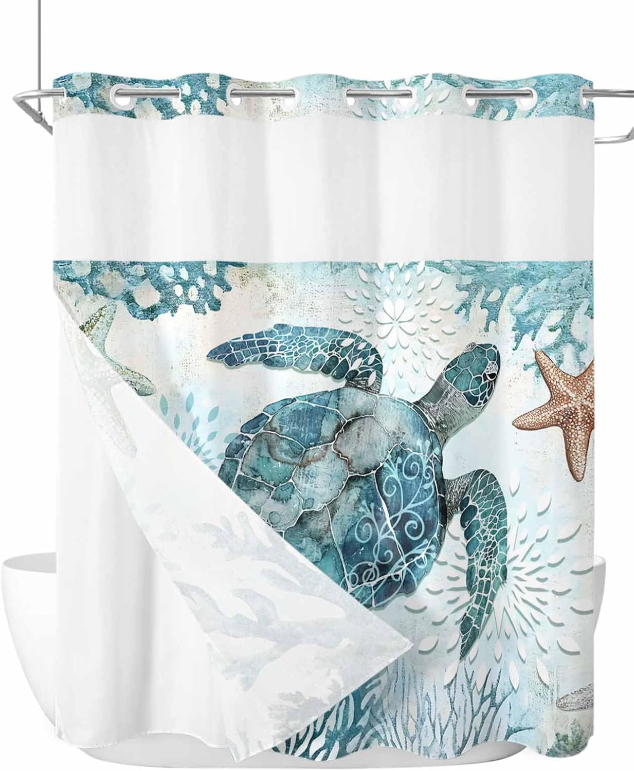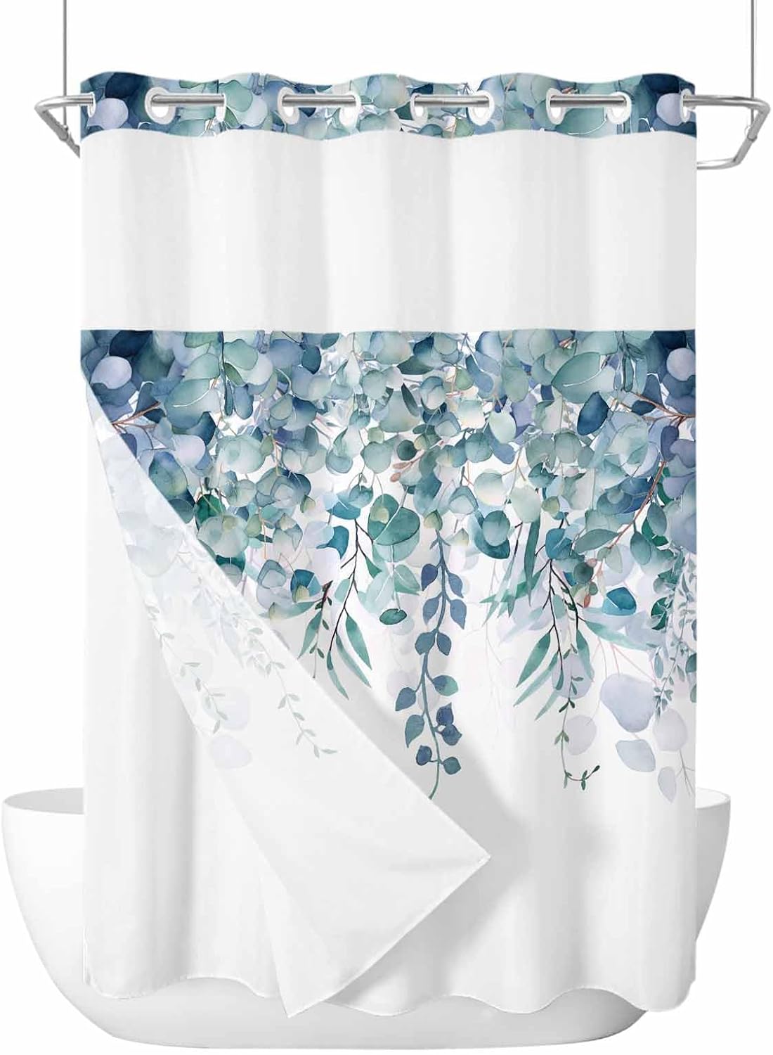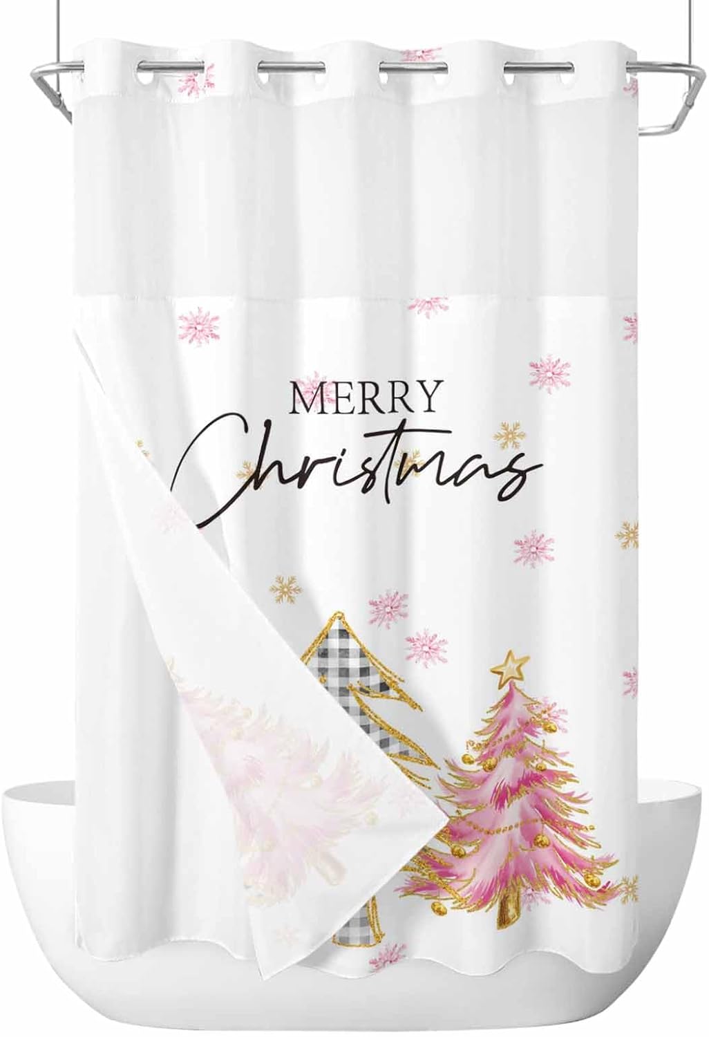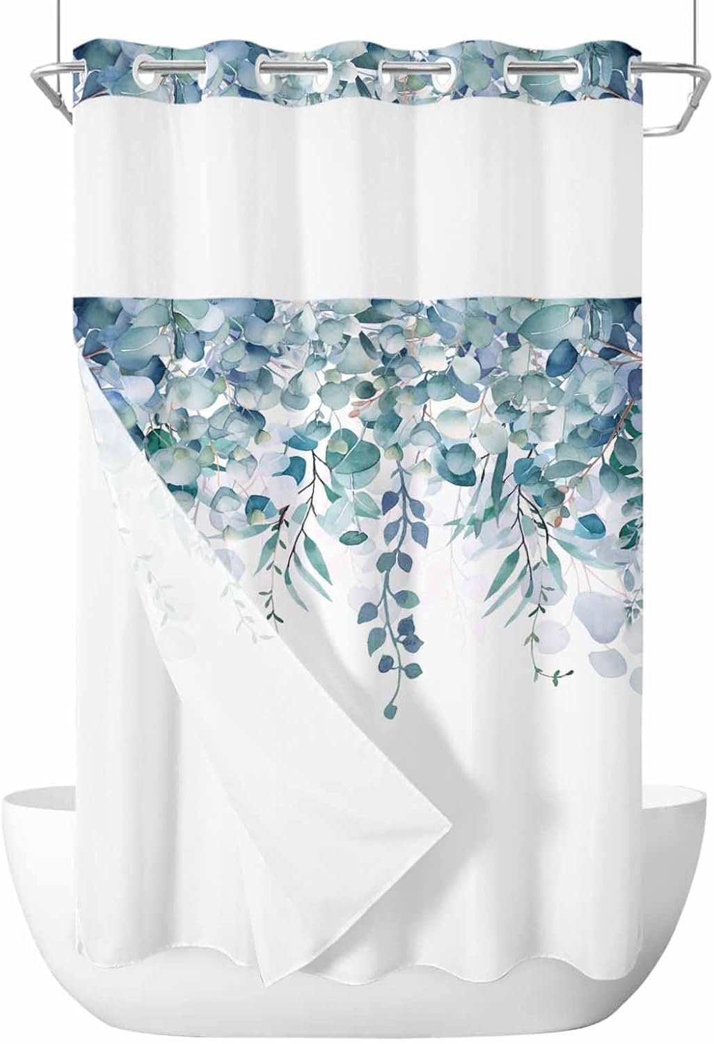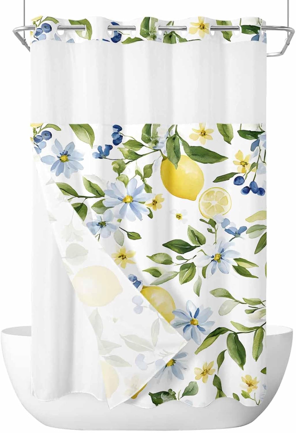 Chic D Shower Curtain is a double shower curtain with a snap design. Compatible with beauty and practicality,you will have a good mood when you take a shower! 🌟Mesh Windows The mesh section at the top provides more light into the shower area while maintaining privacy. It also promotes airflow to reduce humidity to provide a comfortable bathing environment for you. 🌟Double Layer With Snap The shower curtain with snap in liner, Double layer design made of premium 100% polyester fabric. White snap-in fabric liner is removable for cleaning without removing the entire curtain. 🌟No Hook - Easy Installation Hook Free Design and snap-in design effortlessly hook up the shower curtain on the rod within seconds. Easy to install and convenient. 🌟Waterproof Feature Made of premium polyester fabric. Waterproof, non-fading, and wrinkle-resistant. Adopt raincoat water repellent technology. Allow the water drop to fall off quickly. Keep the bathroom neat and clean. 🌟HD Printing and Vibrant Colors Shower curtain adopts HD printing technology to ensure vivid pattern and bright color, no smell, and no fading. Give visual enjoyment when you take a bathing. 🌟Easy to Wash Hand wash or machine wash with cold water, hang to dry, do not bleach.