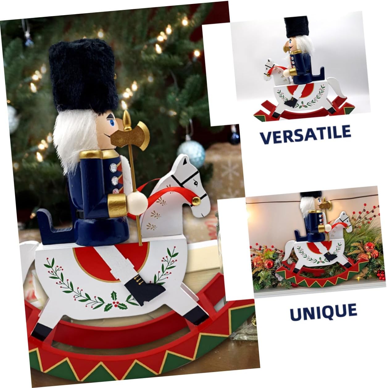 Package List 1 x wooden horse nutcracker Characteristics -Ideal holiday giving: this ornament makes an excellent christmas present, bringing warmth, joy, and festive cheer to your loved ones nutcracker -Unique soldier: featuring a royal soldier design, this ornament stands out with its unique and captivating appearance wooden nutcracker statue -Beautiful christmas decoration: this rocking horse nutcracker is a beautifully crafted decoration that adds a festive touch to your christmas celebrations xmas nutcracker soldiers -Sturdy quality: each nutcracker is carefully handmade, ensuring attractive and intricate detailing in every piece christmas nutcracker statue - Size: 30.50X26.00X9.20cm/11.99X10.22X3.62in -Product Info:Nutcracker ornaments -Material:Wooden -Versatile placement: suitable for desktops, bookshelves, and other surfaces, this piece brings a festive and colorful touch to any space - Goods Descriptionxmas nutcrackers pendant Use them as part of your xmas nutcracker collection or as unique Christmas tree hanging decor. nutcracker Their intricate designs and festive colors make them a standout addition to any holiday display, ensuring your home is filled with seasonal cheer.nutcracker statue decor These nutcracker hanging decorations are a delightful way to celebrate the festive season