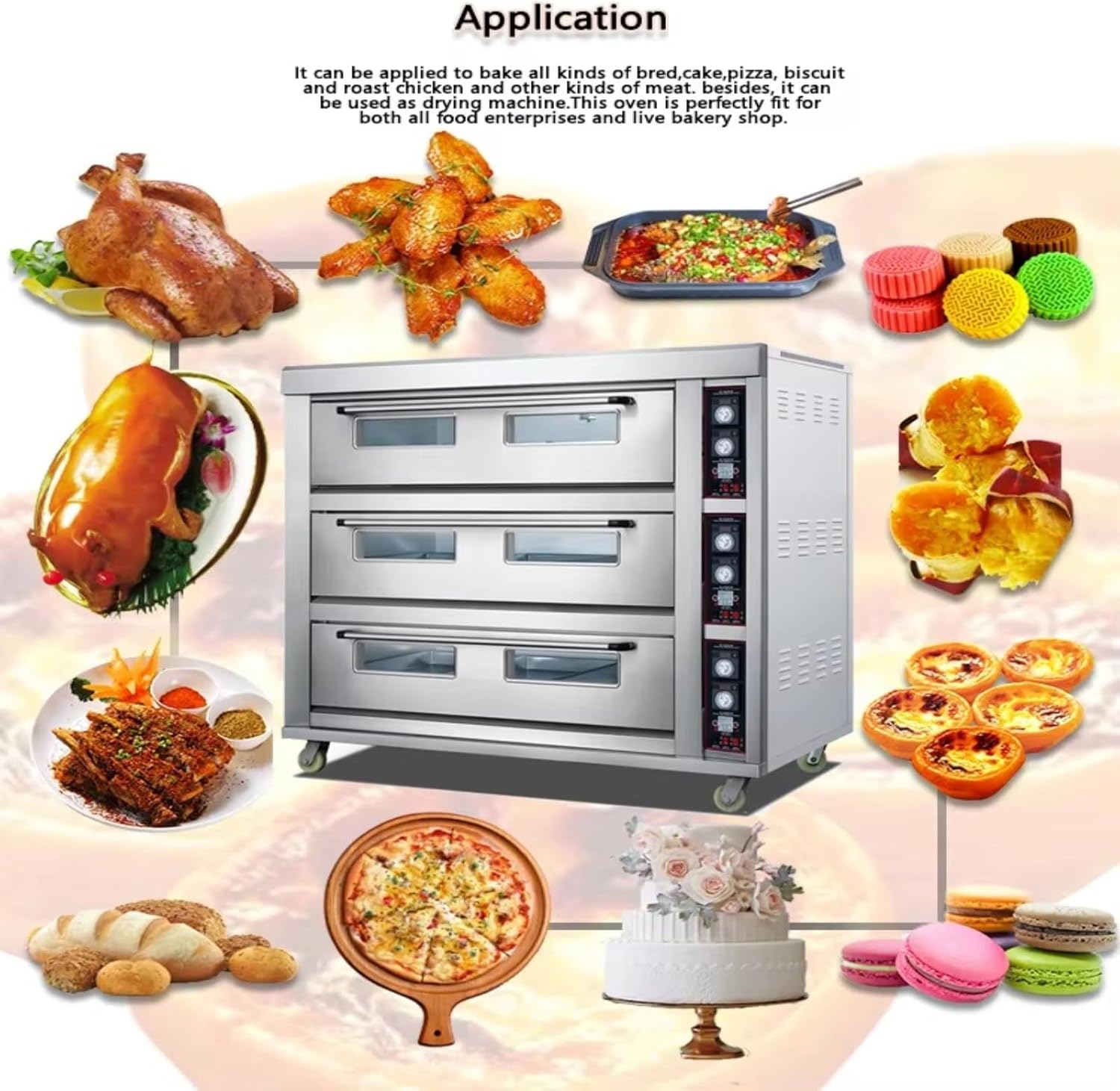 Commercial Convection Oven, Multi-Function Oven with Even Baking & High Output Performance, Stainless Steel for Bakery, Café & Professional Use Specifications 1: Adjustable temperature range 2: Include stable voltage compatibility 3: Compact or large-capacity options 4: The precise digital temperature control system 5: The fast preheating system reduces waiting time 6: Built with advanced forced air circulation technology To use: simply place the oven on a stable surface, connect to a proper power supply, set the desired temperature and time, and preheat before loading food. The user-friendly control panel makes operation easy for both beginners and professionals. Notices: Always ensure proper ventilation during operation. Do not overload trays to maintain even airflow. Allow the oven to cool down before maintenance for safety. This commercial electric convection oven is suitable for restaurants, cafés, food trucks, bakeries, and small business owners looking for reliable baking equipment.