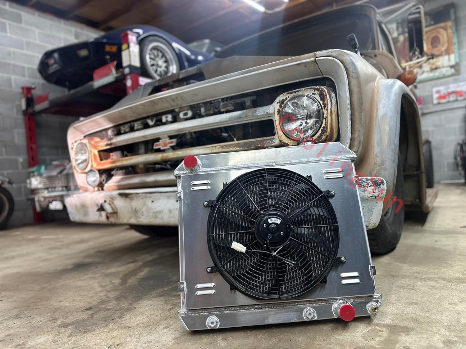 Compatible with: Oldsmobile 1961 1962 Olds Dynamic 63-66 CHEVY TRUCK PICKUP SUBURBAN 1963-1966 Oldsmobile 61-62 CHEVY PICKUP SUBURBAN 63 64 65 66 Pontiac Bonneville 61-66 Chevy Truck C10 C20 C30 63-66 CHEVY TRUCK C/K SERIES/PONTIAC PICKUP 61-66 CHEVY GM C/K Truck 61-66 Radiator Details: Type: 3 Core Core Thickness: 1.73" Core/ Tank Material: All Aluminum CNC Machined Filler Neck and Cap OEM Style Brass Petcock Drain With Transmission Cooler Delivery: Local Delivery Fitment Type: Direct Replacement Style: Downflow Performance: Up to 30%-45% Cooling FAN SPEC: Maximum Fan CFM: 2000±200 Fan Diameter (in): 16.050 inches Thickness (in): 2.790 inches Number of Blades: 10 blades Maximum Fan RPM: 2,250 rpm Blade Material: Plastic Amp Draw: 12.70 amps Includes the Mounting Tabs for an Easy Zip Tie Installation Thermostat Kit: Universal fit for any automotive vehicle and electric fan. Activates by grounding electric fans at preset temperature. 180'F turn-on temperature, 165'F turn-off temperature. 3/8" NPT thread-in brass probe included. Probe typically threads into radiator, water outlet or manifold. Thermostat Relay Kit Instructions: RED + connect directly to battery. WHITE wire to ignition switch power source. BLACK goes to thermos switch. BLUE wire goes to the Fans. Package Include: 1 X 3-Row Aluminum Radiator (Includes Radiator Cap) 1 X Aluminum Shroud 1 X 16"Fan (Includes mounting kits) 1 X Thermostat Relay Kit MotoCooling Radiador: 1.Shuttered design T-5052 fan shroud to guaranteed airflow passes high efficiently. Make your engine bay perfect! 2. S blade fans, Push or Pull Type design, lightweight Plastic Durable Material. 3. Additional with thermostat