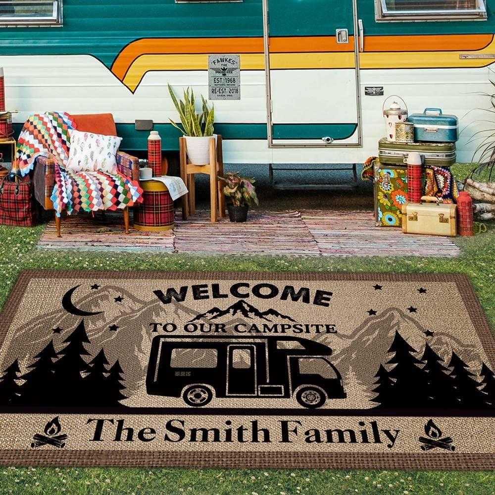 CafeTime Camping rug with RV Trailer, beautiful desgin and print well, it's a better journey with this rug.
