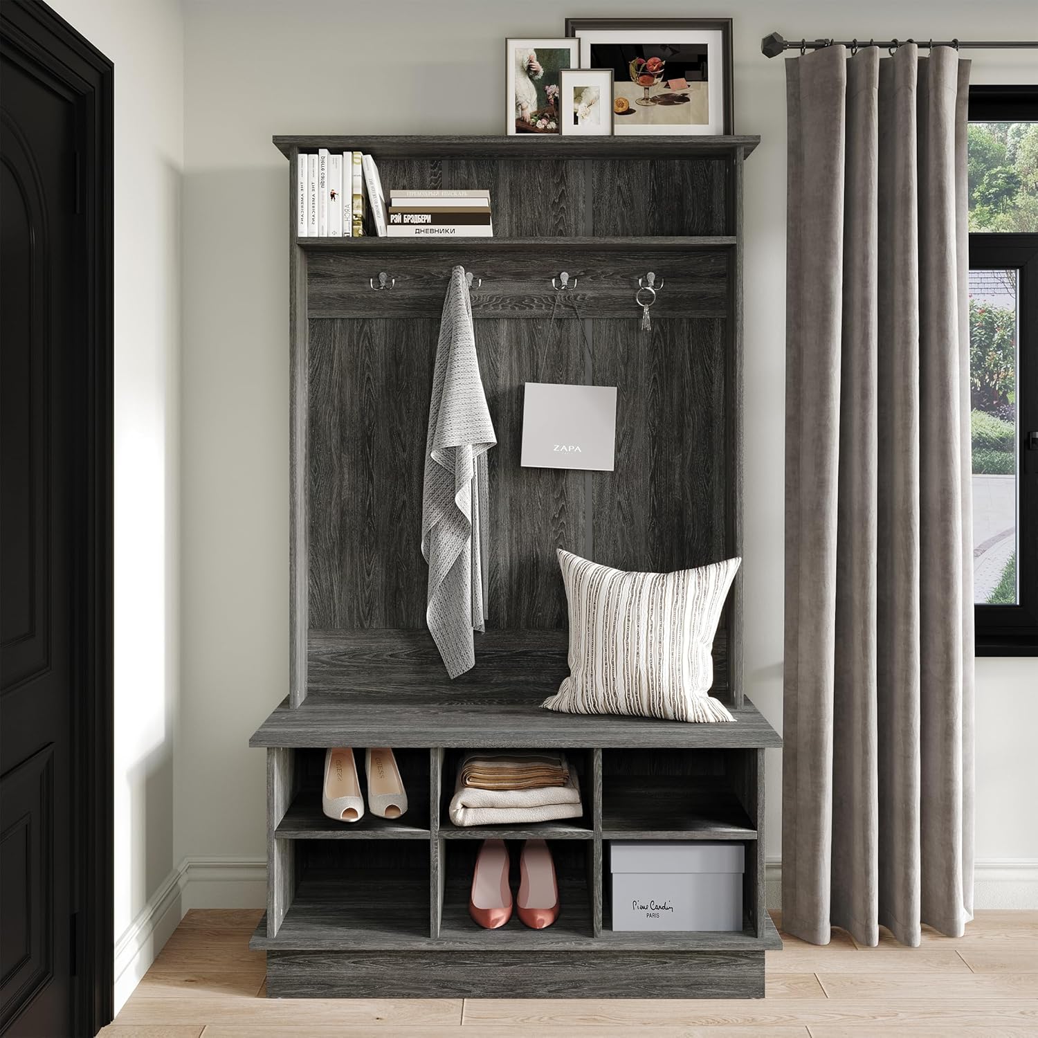 Entryway Hall Tree with Bench and 6 Storage Cubbies, White