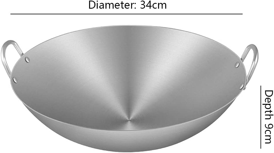 Describe: Type: Double ear stainless steel wok Material: Stainless steel size: Specification: 34/36/38/40/43/46/50/55/60/65/70CM Caliber: 34/36/38/40/43/46/50/55/60/65/70CM Pot depth: 9/10/11/11.5/12/13.5/14/15/16/18/21CM Handle: double ear handle Features: not easy to stick to the pot Applicable scenarios: Commercial Applicable object: gas stove Care instructions: 1. Please wash and dry thoroughly after each use to avoid food residues, warm water is better; 2. The cleaning tools can choose sponge, scouring pad and detergent and special cleaning agent for stainless steel; 3. It is not recommended to use steel wire balls and decontamination powder to wash the pots and utensils, which will cause the brightness of the mirror polishing to darken and become old; 4. If there is a paste pot situation, it is recommended to soak it in warm water until it is soft before cleaning; After the promotion: We take full responsibility for our products. If you have any questions about our products, please feel free to contact us. We will assist you in solving the problem. Notes: Dear buyer, due to lighting effects, display brightness, manual measurement, etc., there may be slight differences in color and size between the photo and the actual product. Sincerely hope you can understand! Thanks!