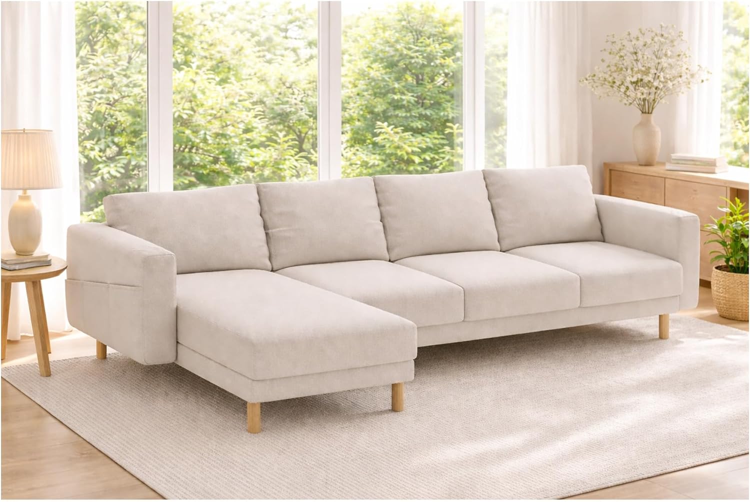 HomeTown Market Durable Three Or Two (3 or 2) Seat with Chaise Sofa Cover Replacement Custom Made Compatible with IKEA Norsborg Sectional Corner Chaise Sofa Slipcover (2 and Chaise Polyester Beige)