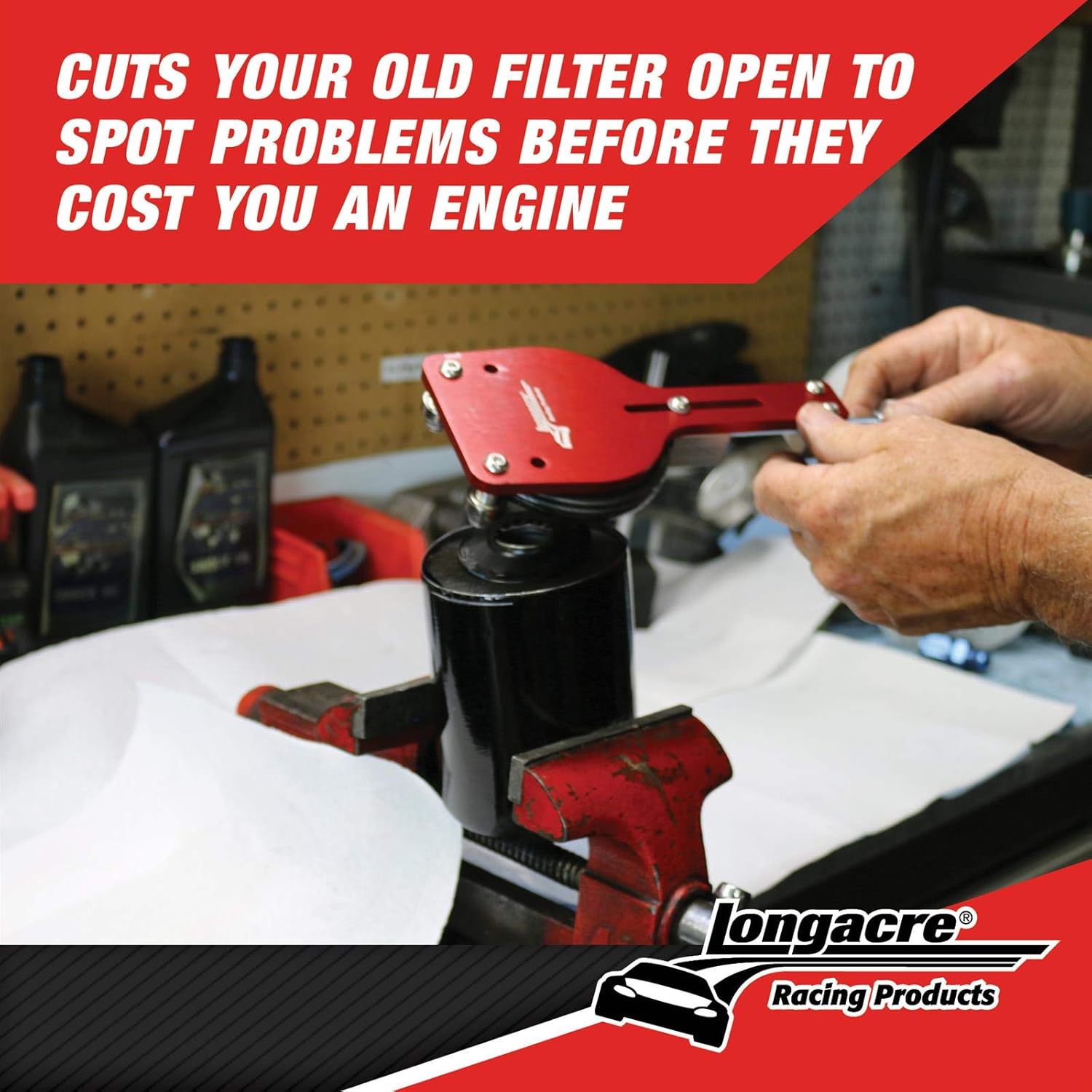 • Protect your engine - the Longacre oil filter cutter allows you to cut your old filter open to spot problems before they cause damages to your engine