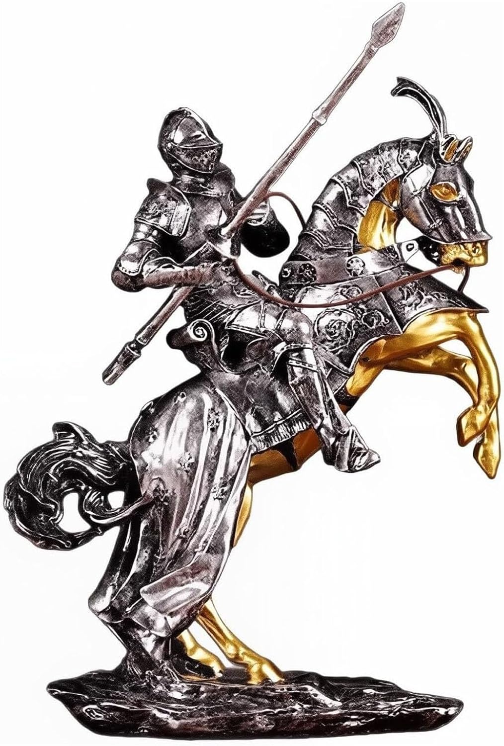 Defend Your Realm with Honor Add a touch of medieval grandeur to your sanctuary. This 11-Inch Armored Crusader Statue stands ready for battle, a timeless symbol of bravery and protection. Visual Masterpiece: The Pose: The horse trots confidently into the fray, while the knight holds his shield high—a classic stance of a disciplined commander. The Contrast: The cold, battle-worn silver of the armor clashes stunningly with the regal gold of the warhorse, creating a focal point that demands attention. The Detail: Notice the intricate rivets on the shield and the realistic folds of the chainmail. Why Choose This Knight? Perfect Fit: At 11 inches tall, it clears standard bookshelf heights easily. Premium Feel: The 0.7kg weight ensures it feels as good as it looks.