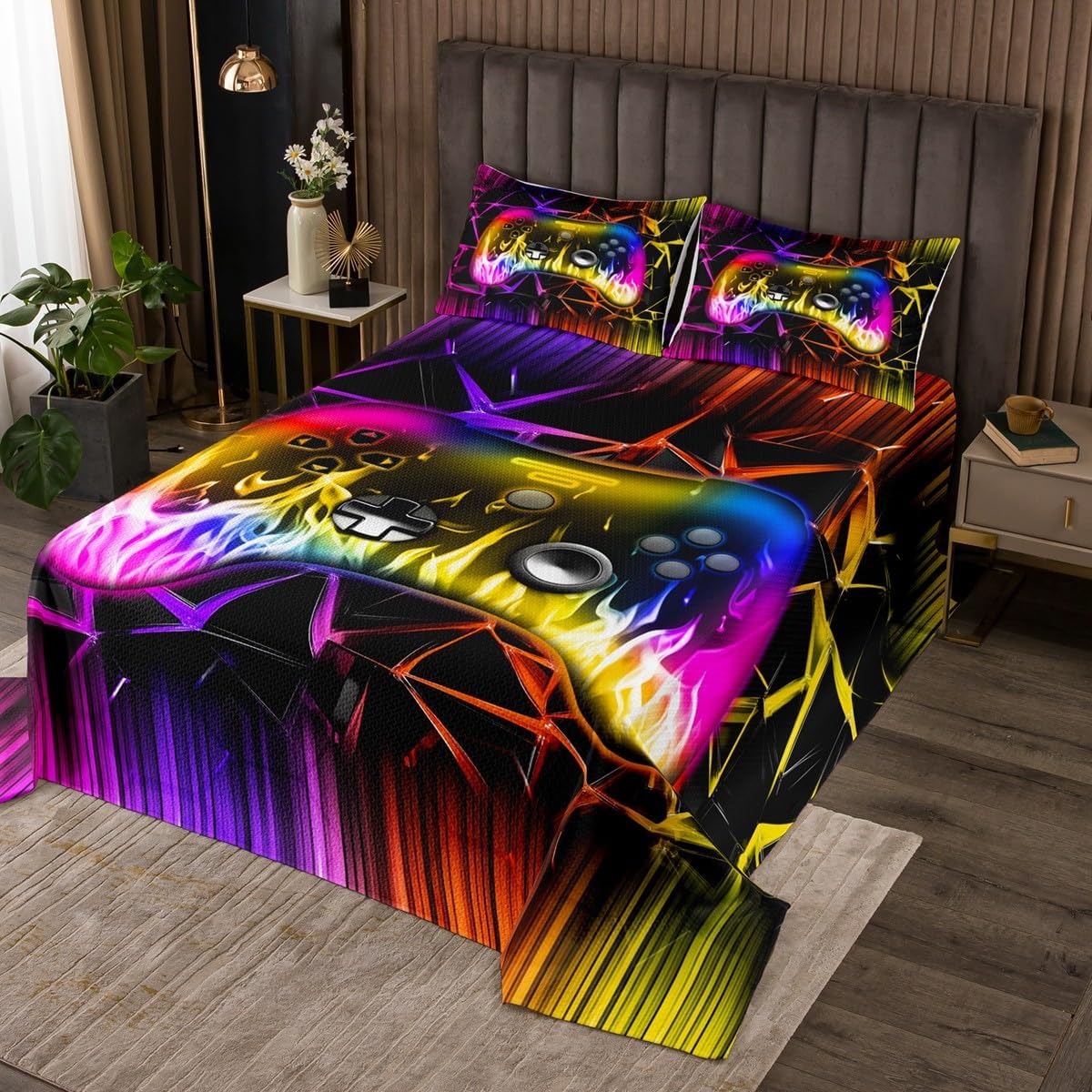 Best blessings: Makeover your bedrooms every season with our bedspread sets. Perfect item for your room,girls boys youth room,master bedroom. Size information: 1 Twin size quilted bedspread 68" W X 90" L and 1 quilted pillow sham 30" W X 20" L . 1 Queen size quilted bedspread 90" W X 90" L and 2 quilted pillow shams 30" W X 20" L . 1 King size quilted bedspread 104" W X 90" L and 2 quilted pillow shams 36" W X 20" L . Useful and practical: A luxurious product for homes,dorm rooms,hotels,guest rooms.Practical to use for being polyester,feels like cotton which is super soft and breathable. No chemicals used,no dye substance harming the health of you or your family. Unique design: Vivid colors won't fade thanks to new 3d digital printing methods.These unique designs match well with various color palettes of your rugs,curtains,headboard,furniture,and all other decor accessories. Personalized: As manufacturers of digital printed home textiles,we follow current trends and bring you the latest home fashion. Note: The bedspread and pillow shams are printed on the front side only,the back of them are white colored.Comforter is not included in the set.