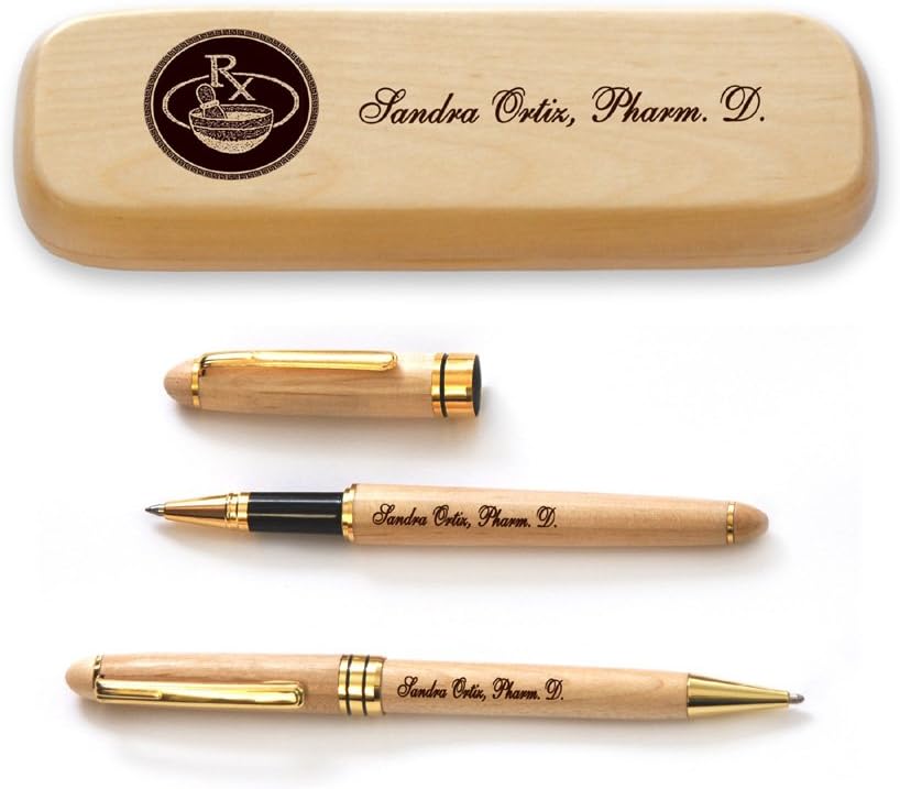 This is handcrafted Afzelia Africana wood pharmacists set. Celebrate pharmacists dedication with professional gift that last a long time. Made from genuine solid Afzelia African, this set combines the “Lace Wood” grain’s natural beauty with heavy-duty durability. This is personalized pharmachists pen set. It is great custom pharmacists gift. This engraved wooden pen box has pharmachist’s logo along with her (his) name. This will be a great personalized medical professional gift.