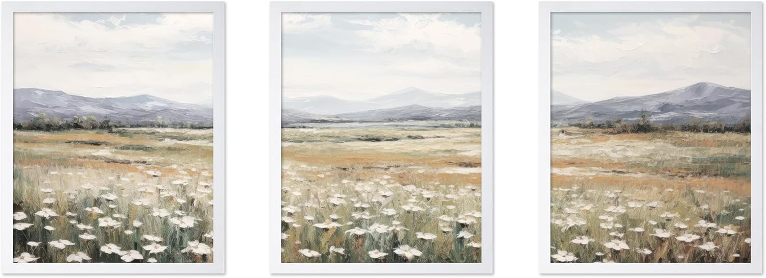 Poster Master 3-Piece Meadow Print - Vintage Flower Landscape Poster - Garden Poppies Art - Country Farmhouse Painting - Floral Aesthetic Living Room or Bedroom Decor - 11x14 UNFRAMED Wall Art