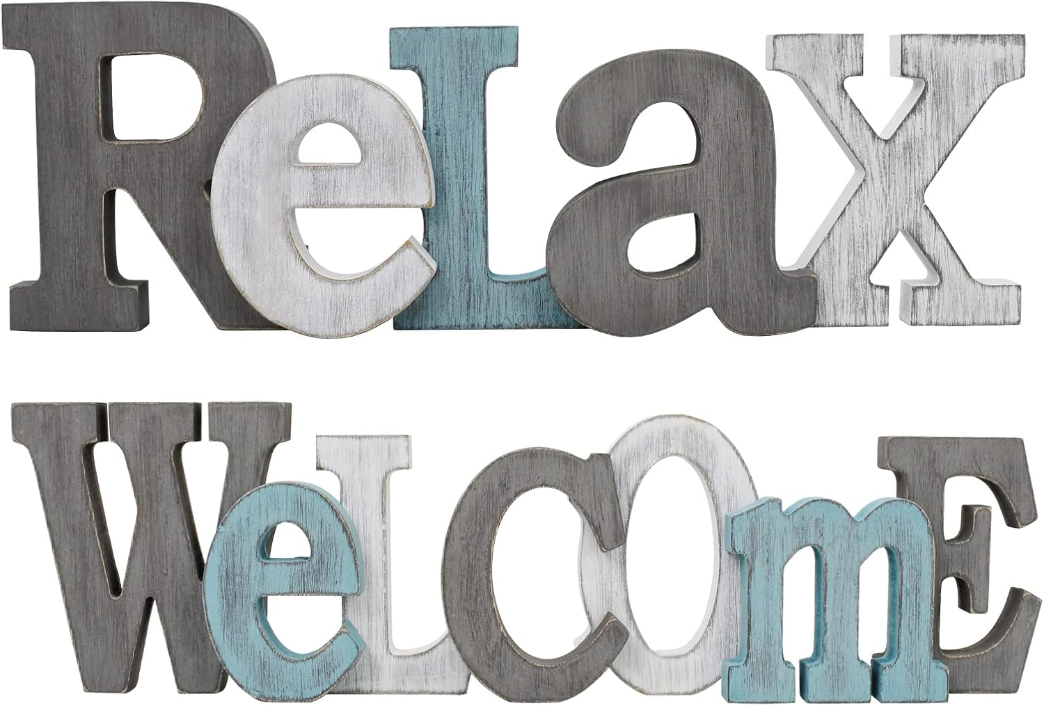 Rustic Relax Decor Sign Decorative Word Sign Wood Letters Relax Sign, Decorative Wooden Block Word Sign Freestanding Wooden Letters Tabletop Sign DecorWOODEN WORD SIGN: Block word for decor is made of premium MDF material painted in classic multicolor color. Sturdy and durable. Simple and sleek cutout word decor offers a subtle enhancement to fireplace, a perfect mantel sign décor or wall decor.FREESTANDING TABLETOP WORD DECOR: Wooden sign for home decor is a great decorative accent piece to display on any tabletop, desktop, book case, shelf, mantel, cabinet or counter top. You can also hang the word sign on the wall. Create a touch of happiness with this relax tabletop word sign.VERSATILE RELAX LETTERS DECOR: Relax wood sign for home decor blends seamlessly with any modern, farmhouse, country, vintage or rustic design room style. You can also paint the rustic relax sign into any color you like to match your home style better. WORD SIGN DECOR GIFT: Decorative relax sign makes a warm and nice gift. It’s a great house warming gift, birthday gift, holiday gift for friends, family, colleagues and loved ones. Simple design matches with any room style.PACKAGE: 1 X Rustic Relax Wood Sign