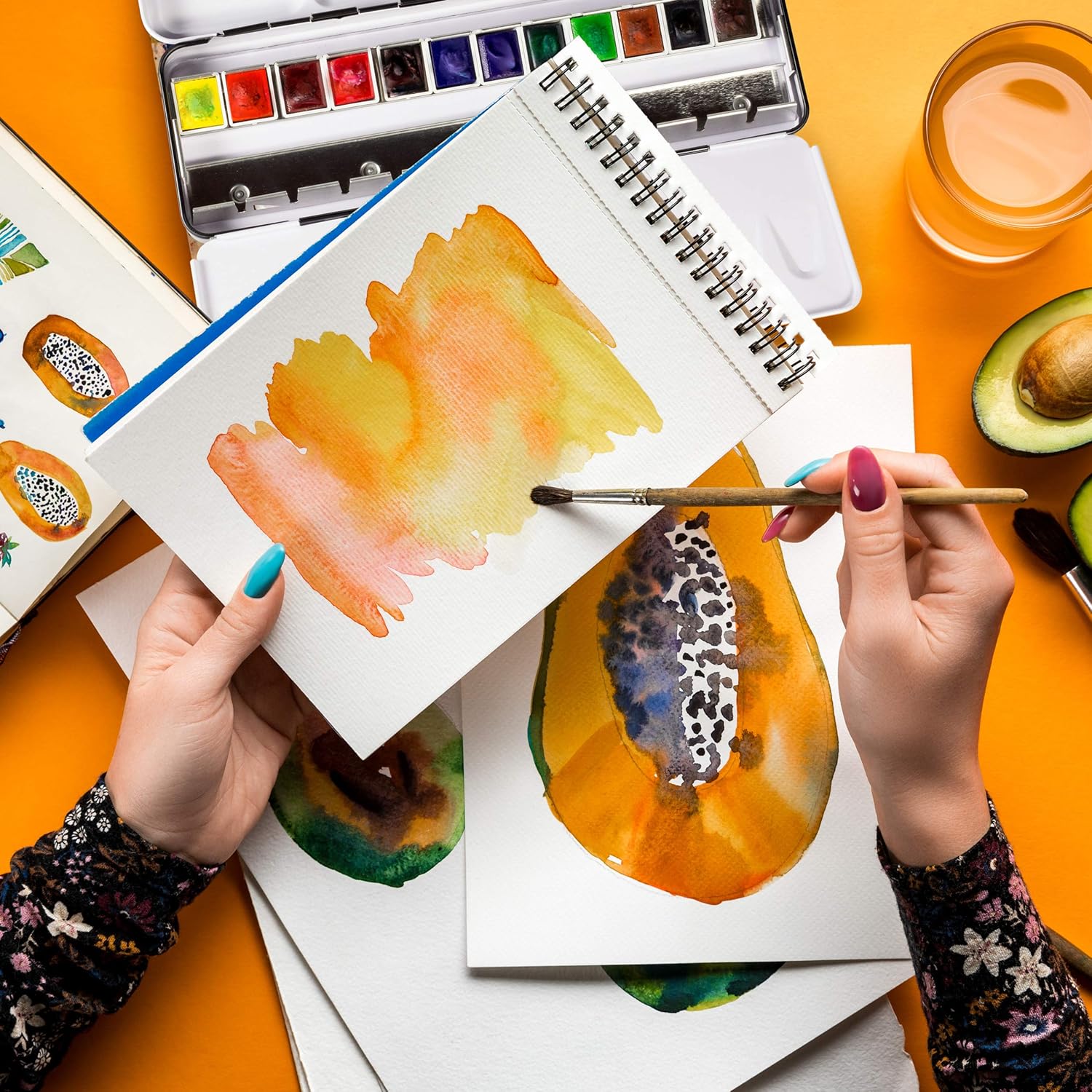 These watercolor sets feature brilliant colors, are perfect for the budding artist and are ideal for travel and plein air painting. 12-color sets include primary yellow, orange, primary red, permanent pink, cobalt blue hue, primary blue, deep green, green yellow, yellow ochre, burnt umber, Payne's gray and titanium white.