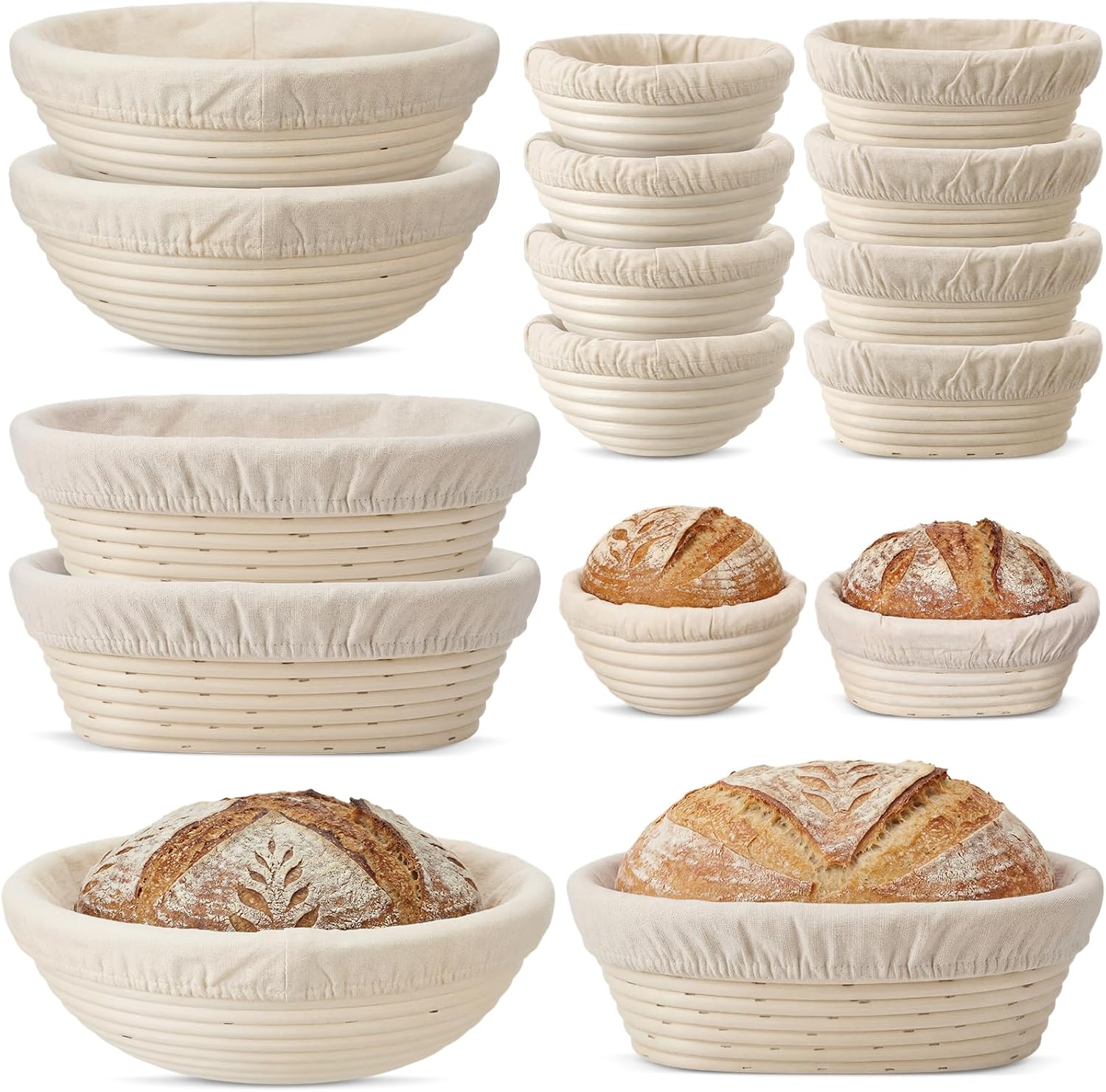Features: Enhanced baking experience With these sourdough proofing baskets, you'll be able to create beautifully textured bread with a golden crust and airy pockets. The design and materials work together to release the dough's aroma and improve the final product's appearance, making every baking session a rewarding experience. Enhancing emotional: With these sourdough baskets, you can make delicious bread to share with family and friends, and also involve them in the process, thus strengthen each other's feelings Specifications: Material: rattan Color: beige Size: Round bread proofing basket: about 5.12 x 2.36 x 2.36 inches/ 13 x 6 x 6 cm Oval bread proofing basket: about 6.69 x 4.72 x 2.36 inches/ 17 x 12 x 6 cm Package includes: 4 X Round bread proofing basket 4 X Oval bread proofing basket Notes: Manual measurement, please allow slight errors on size. The color may exist a slight difference due to different screen displays