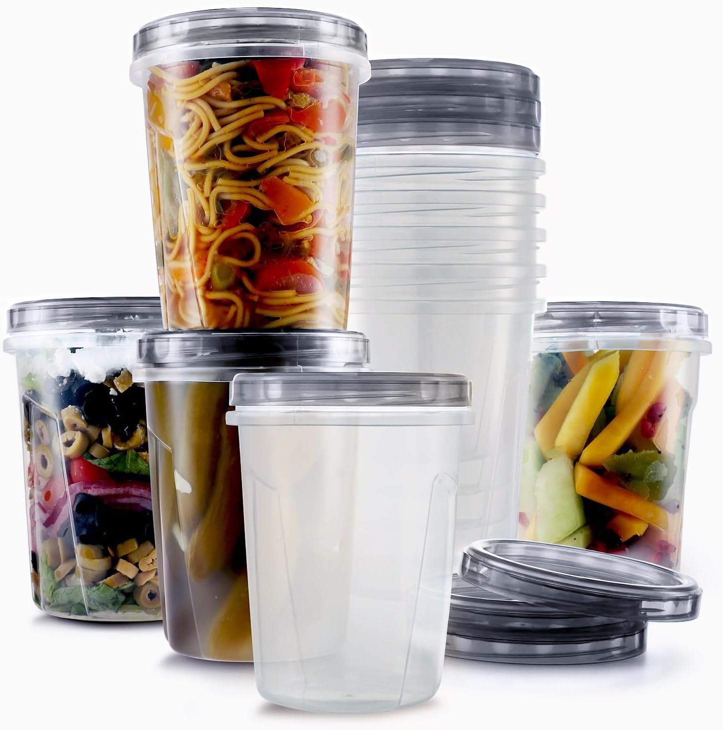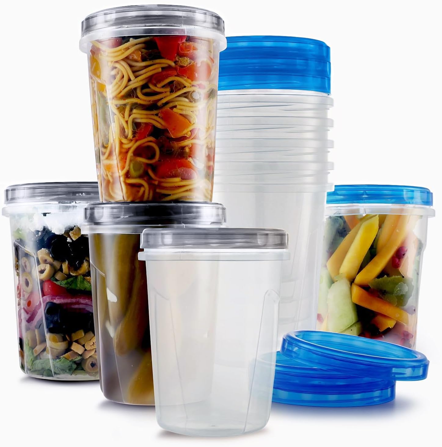 Introducing these practical and reusable freezer storage containers with screw-on lids! You will love preparing your food in advance when you know that you can store them mess-free and organized with no worries for leaks or spills. Using these reusable twist-top lids food containers is about to make your everyday living just easier. This round food storage containers with lids are the perfect choice to be used for a large variety of uses and needs, such as: Soups, Stews, Salads, Deli, Noodles, Stock containers, Top containers, And more. It is designed with a screw-on lid to keep the contents fresh all day long, and it also prevents leaks and spills, which makes it the best containers to freeze soup or any liquid containers. This large food storage container is made from food-grade PP and is free of BPA and other harmful substances.