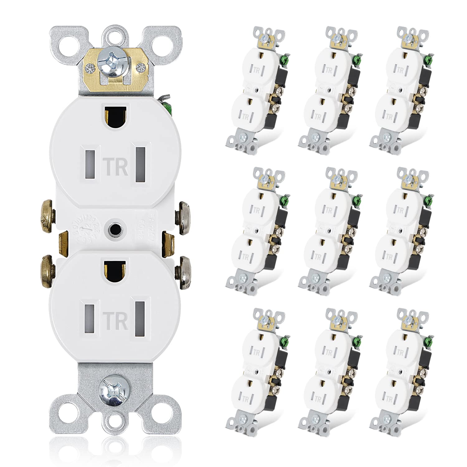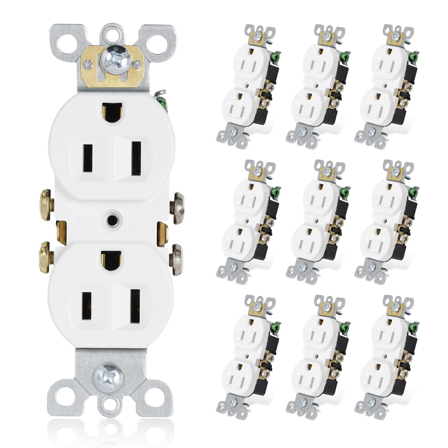 Upgrade your home or office electrical safety with the Thunderway 15A Duplex Receptacle. This pack of 10 white electrical outlets is perfect for any home renovation or building project, providing both convenience and value. With its tamper resistant design, these outlets increase the safety level in your home or office by preventing unwanted objects from being inserted into the outlet. The high-quality components and fire-resistant material ensure that you and your family are protected from potential electrical fires. These Thunderway outlets are ideal for both residential and commercial use, making it a versatile option for any space. The included decorative wall plates add a touch of elegance while also keeping the wallboard clean and providing an easy installation process. The compact design and push-in & terminal screws make the installation process quick and effortless, so you can enjoy your new outlets in no time. This Thunderway 15A Receptacle is UL Listed and backed by a 2-year warranty and 30-day money-back guarantee, ensuring that you are fully satisfied with your purchase. This TR receptacle is also rated at 15A/125V/1875W, making it a reliable option for powering your devices and appliances. Invest in safety and style with Thunderway's pack of 10 Duplex Receptacles. The combination of convenience, value, and electrical safety make it a must-have for any home renovator, builder, or anyone looking to upgrade their outlets. Trust the quality and performance of Thunderway for all your electrical needs.