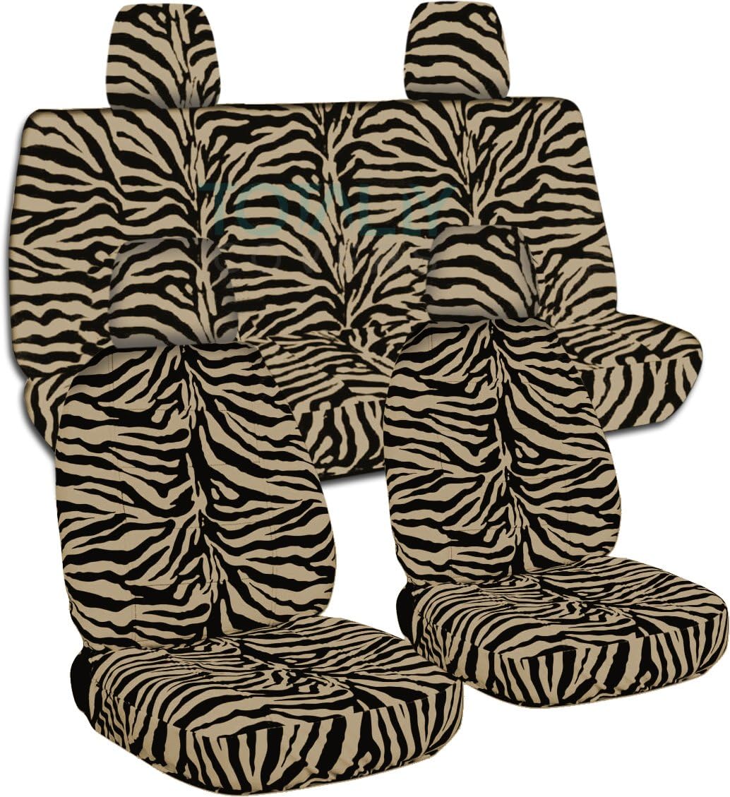 A full set of front and rear, beige snow tiger seat covers for a 2010 to 2012 Jeep Liberty and Dodge Nitro. Be sure to visit our storefront ("Totally Covers") where you can find the largest selection of seat covers, to satisfy even the most demanding of tastes. If you can't find what you are looking for, please contact us ("Totally Covers") We can make seat covers for ANY car, truck, van, RV or SUV in a variety of 145 colors and prints, and even add your name/text and logo/design on them!