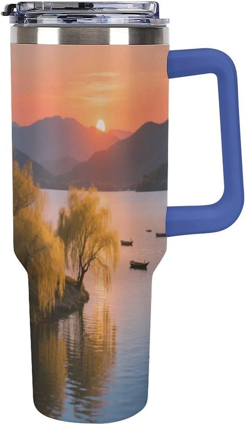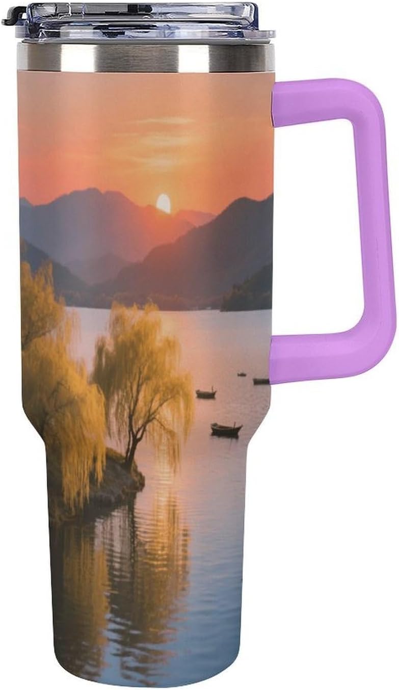 Whether you're on a long drive, a busy commute, or an outdoor adventure, staying hydrated is crucial. Our large-capacity car tumblers featuring the Lakeside Dusk Weeping Willows pattern were developed with this need in mind. They're the perfect solution for on-the-go hydration, ensuring a smooth and comfortable journey. With an impressive 40-ounce capacity, this insulated stainless steel travel tumbler easily meets your frequent hydration needs, from your morning commute to your after-get off work workout or even a full-day road trip. Without constantly searching for water, you can focus on the road ahead and say goodbye to thirst. Whether you're sweating it out on a scorching summer day or sweltering in your car on a dry winter night, staying hydrated helps you perform at your best. We understand your appreciation for quality and aesthetics, and our car tumblers feature unique designs that complement any vehicle's interior, exuding understated elegance. More than just a practical tool, they're the perfect finishing touch, adding a touch of style to your vehicle's interior.