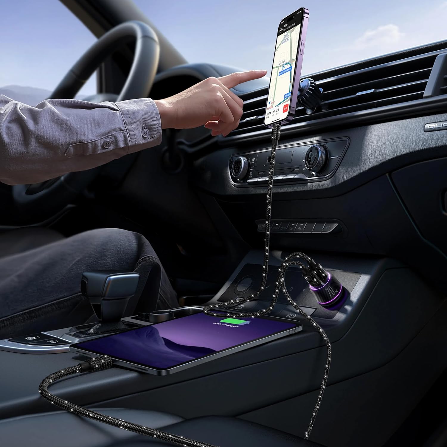 The packages are included 3 USB Cable: pink USB C to USB C cable*1; colorful USB A to USB C cable*1 and black USB C to iPhone charger cable*1.