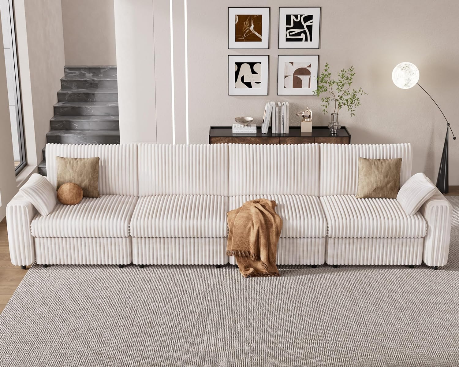 WEUP 170" Large Modular Sectional Sofa, Plush Corduroy Modern Oversized Sectional Couch, Two Pillows, Tool-Free Assembly (4 Seats, Beige)