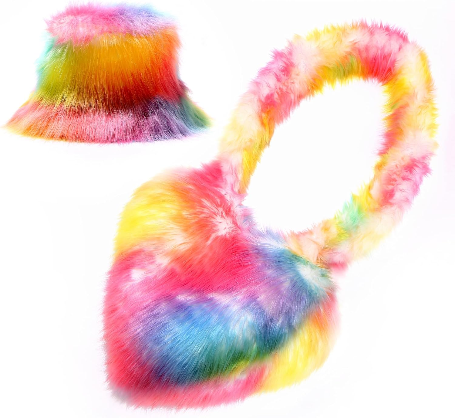 YAMERBO focuses on high-quality fashion fur products. These high-quality furry shoulder handbags and furry bucket hat are made of artificial wool on the outside, warm and soft on the surface, soft to the touch, and suitable for women of all ages and lifestyles. Believe that in the cold winter, our furry accessory not only bring warmth to every girls, but also do not lack a sense of fashion! This large-capacity shoulder bag and same-style caps are the perfect party dress, suitable for Christmas, Halloween, parties, birthdays, New Year, shopping, and outdoor decoration. I believe this fashion Y2k cute faux fur tote handbag sets are full of personality charmthis fur handbag sets, you will become a shining landscape!br> Information Package: 1 PCS heart shaped shoulder bag+1 PCS cap Material: Faux Fur Closure Type: Magnetic closure Color: Black/Brown/White/Pink/Grey/Rose/Green/Rainbow color Suitable For: Women/female/girls/Adults Product Dimension: 14.9in*11.4in*2.3in (L * W * H), strap length:20.8in Product Weight:0.82lb Furry fisherman hat information Bucket hats size:One size fits most. Fit Head circumference: 56-58cm (22.1-22.8 Inch) External materials: Faux fur lining materials: Polyester l Applicable scene: Shopping/causal / gifts /vacation/outdoor/party/club Popular elements: Plush/fluffy faux fur/Bright color/solid color/ rainbow color Applicable people: Ladies/adults/women/female Features: Soft/comfortable/cute/fashion/luxurious/rainbow colors/warm hats in winter Function: Breathable/lightweight/plush/warm/Y2K/cozy. Kindly Notes: