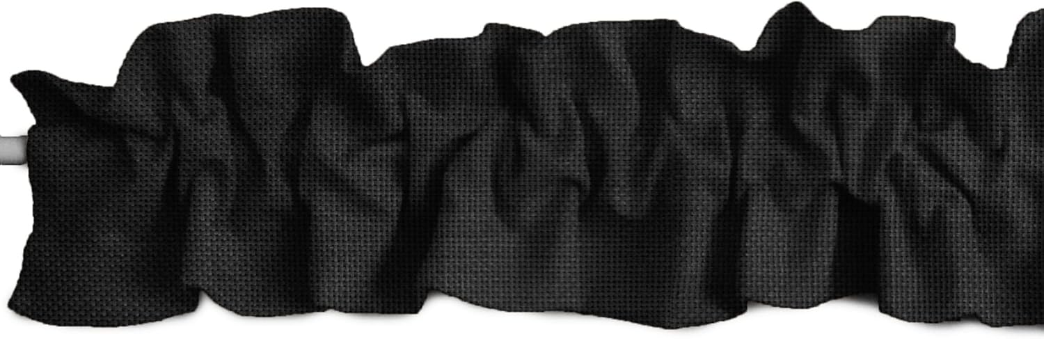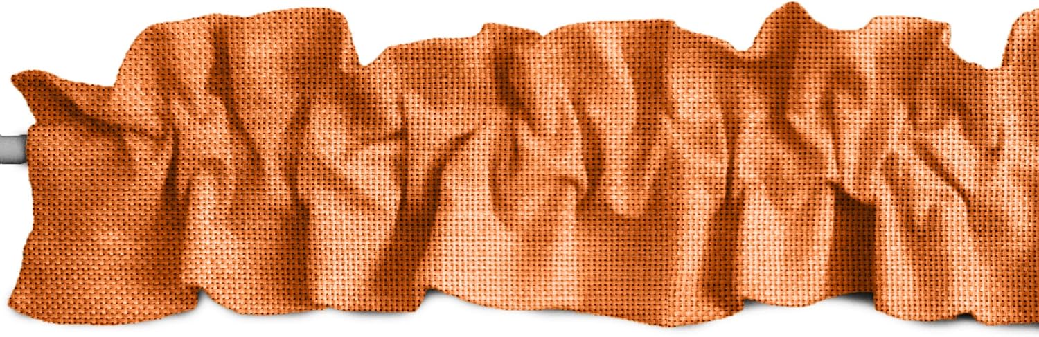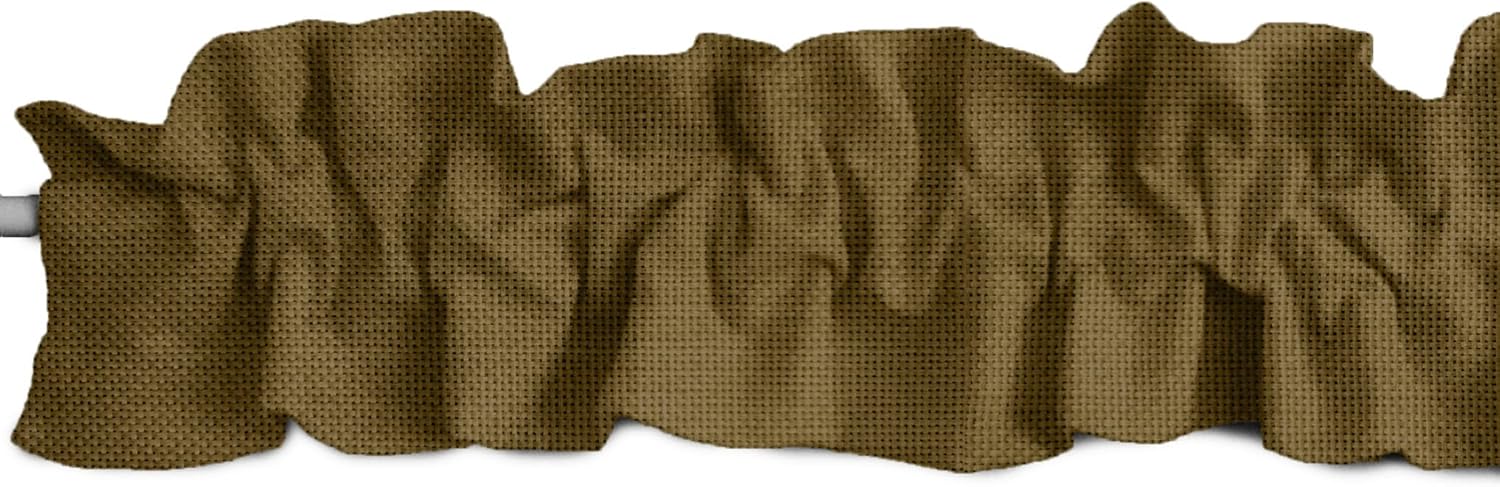 Solid colored faux burlap topper valance. Top and bottom ruffle. Please note that ruffles are created when the material is bunched together; take this into consideration when purchasing the appropriate size. Multiple Sizes and Colors Available. Easy Care Machine Washable. Made in America.
